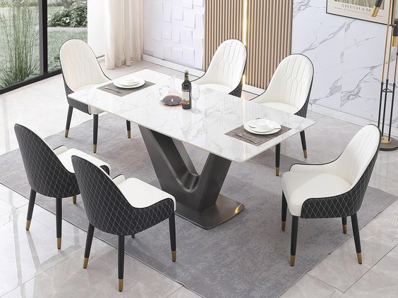 Dining table sets offer complete solutions for stylish and functional dining spaces, comprising a table and matching chairs. Available in various sizes and styles, from compact bistro sets to expansive dining suites, they cater to different room sizes and interior aesthetics. Featuring materials such as wood, glass, or metal, dining table sets complement diverse decor themes and personal tastes. With options including round, square, or rectangular tables and upholstered or wooden chairs, sets can be customized to suit individual preferences. Their cohesive designs create cohesive and inviting dining areas, perfect for family meals, gatherings, or entertaining guests.